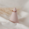 - Cuidados: Evita el contacto con perfumes, cremas, lociones u aceites, recuerda que son piezas delicadas y la composición del producto puede dañar su apariencia. Toda nuestras joyas son entregas con una tarjeta de garantía de cuidados. Guarda tus joyas en su empaque original o en bolsitas de tela suave para evitar que se rayen.